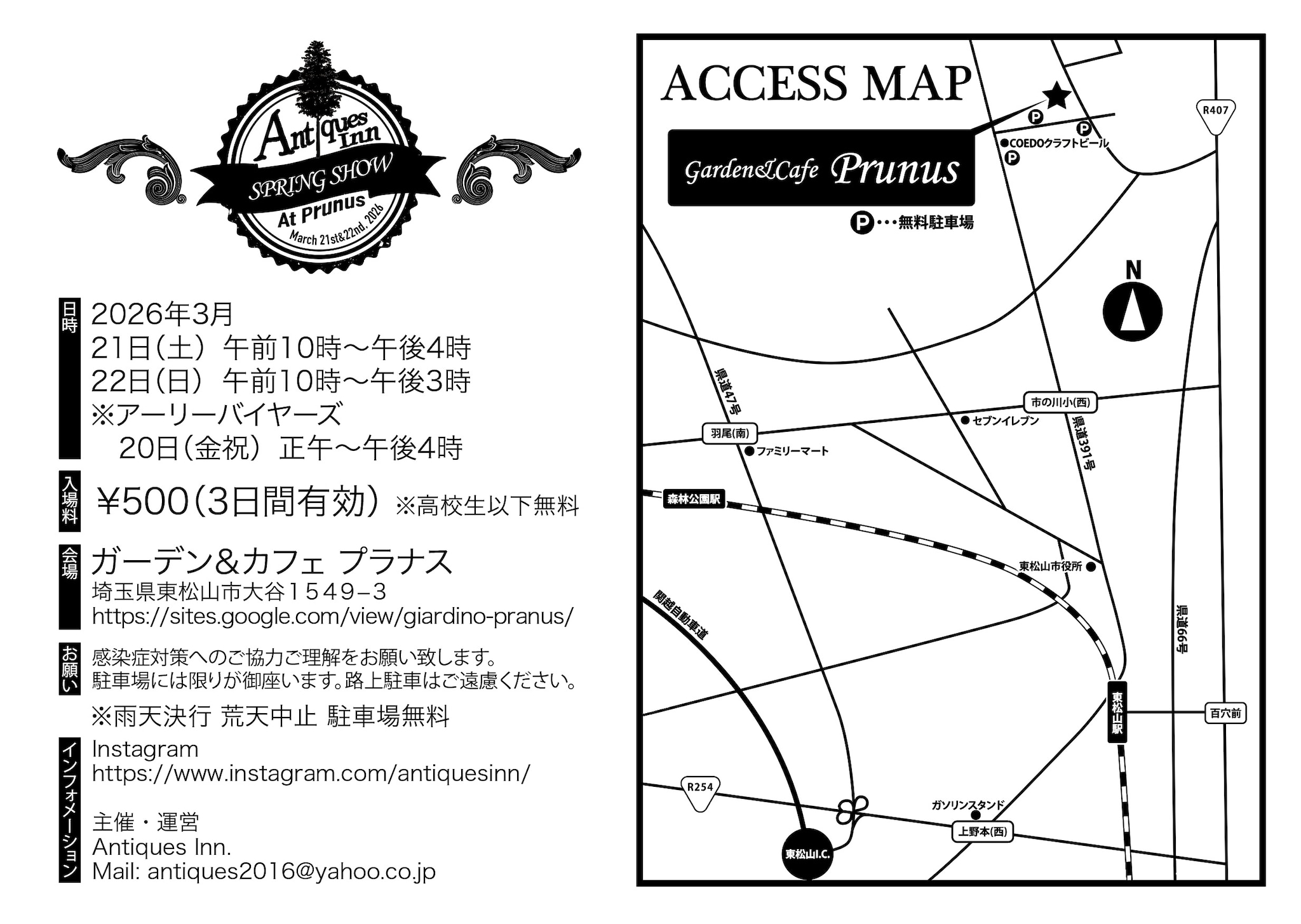 埼玉県東松山市の美しいロケーションで開催される**「Antiques Inn SPRING SHOW 2026」**への出店が決定いたしました。