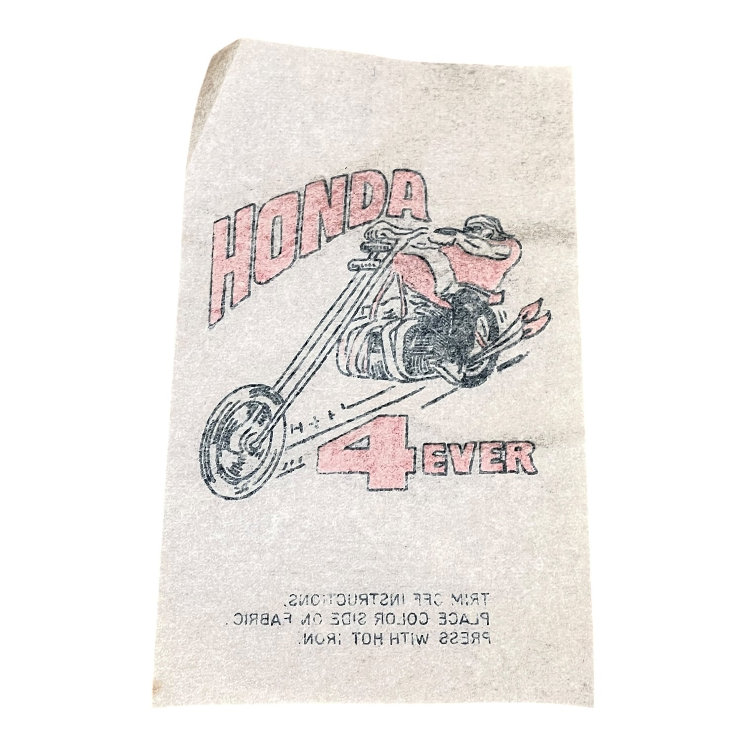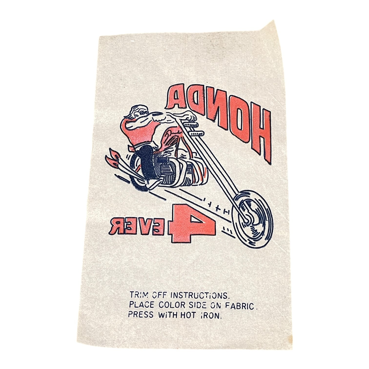 70年代のアメリカン・モーターサイクルカルチャーを感じさせる「HONDA 4EVER」のヴィンテージ・アイロン転写シートです。