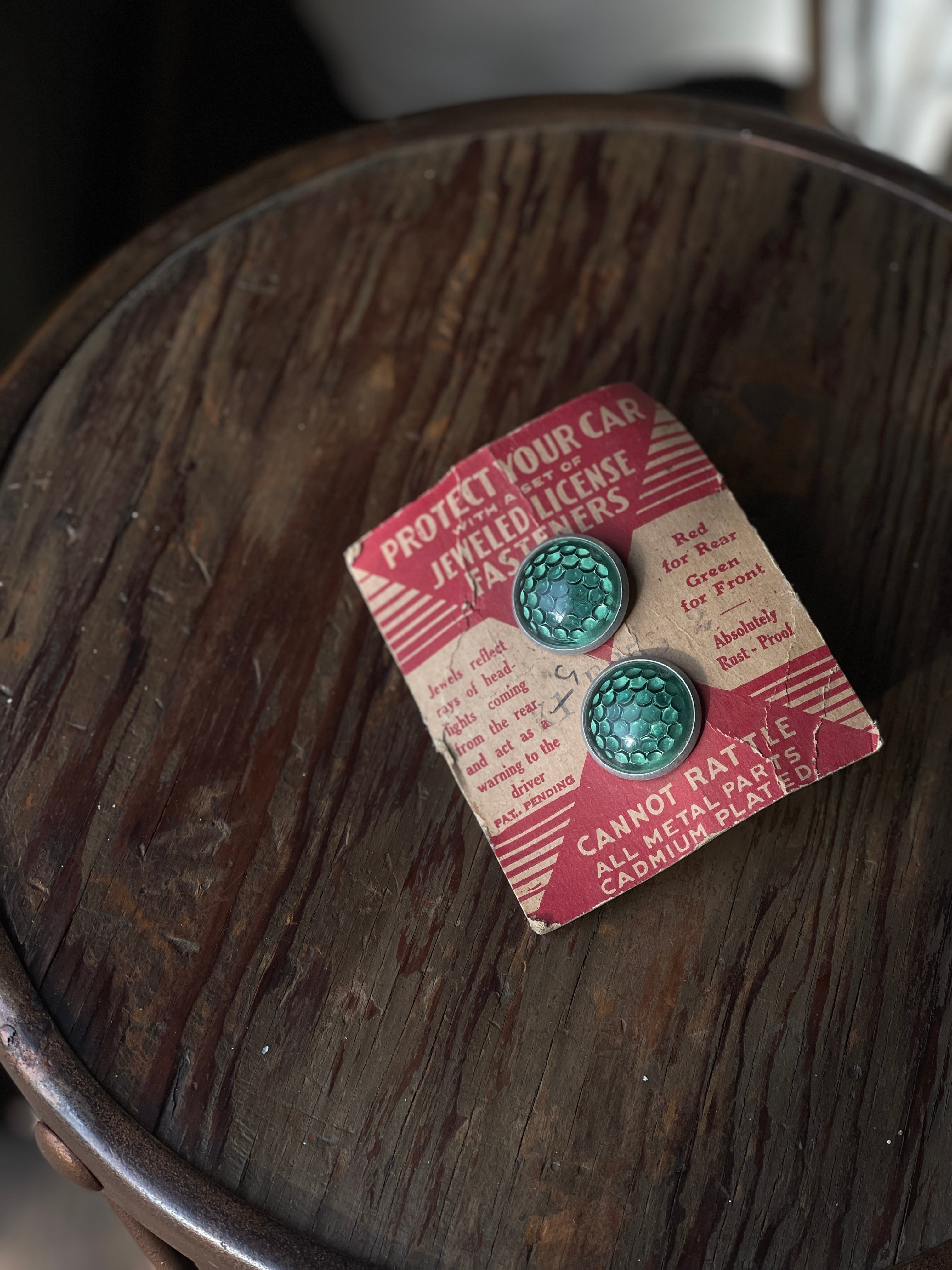 VINTAGE JEWELED LICENSE PLATE FASTENERS GREEN