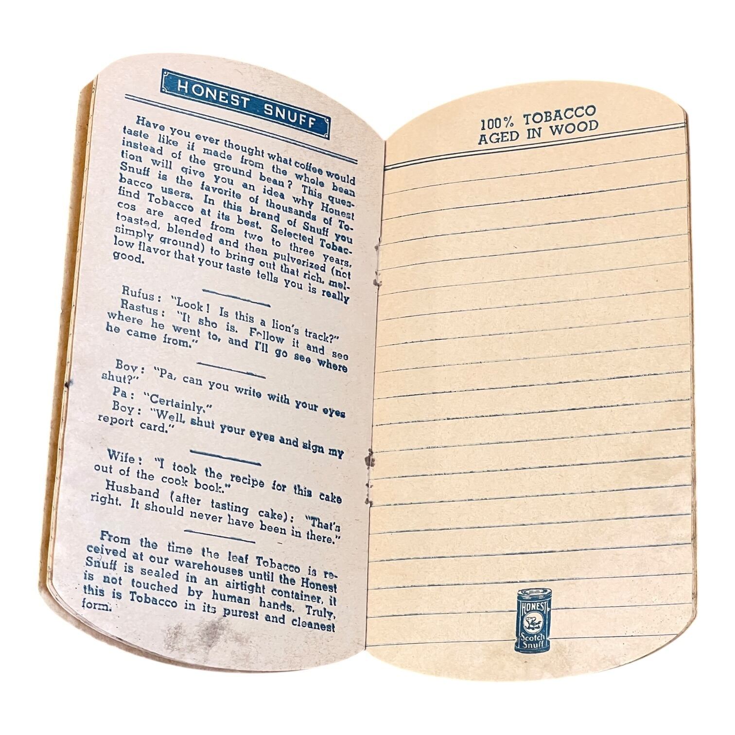 VINTAGE HONEST SCOTCH SNUFF ADVERTISING MEMO BOOK(1942-1943)