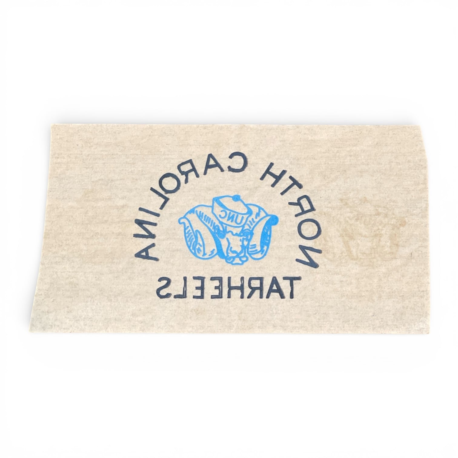 ノースカロライナ・ターヒールズ(Tar Heels)の象徴的なマスコット、セーラーハットを被った「ラムゼス」がデザインされた、非常にクラシックな一枚。当時のカレッジアイテムらしい、独特のフォントとブルーの配色が目を引きます。