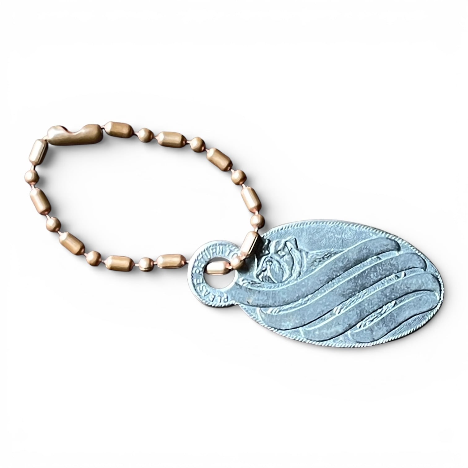 「PLEASE RETURN TO(見つけた方は〜までご返却ください)」という、実用的ながらもどこか情緒を感じさせるメッセージが刻印されたヴィンテージ・キーフォブ(Key Fob)です。